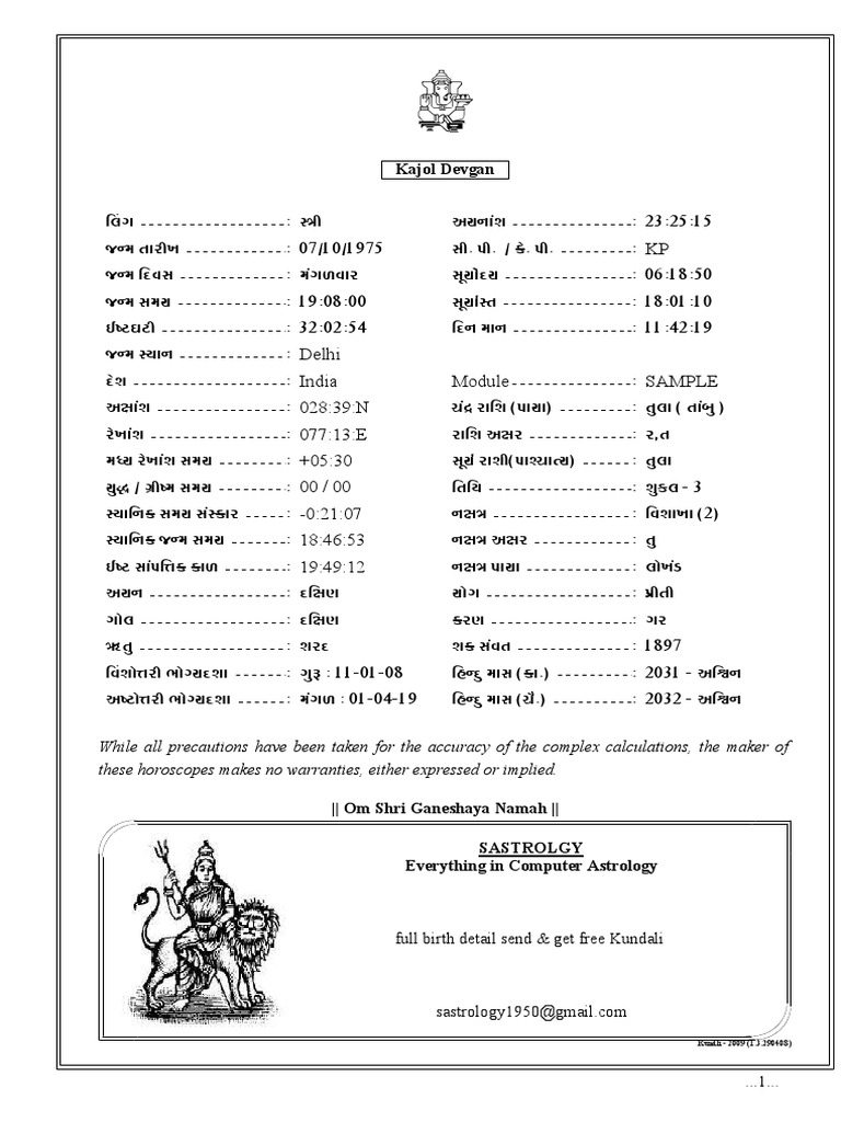 Kajol Horoscope : Kajol horoscope,kajol kundali chart with detailed horoscope by knowastro.com based on dob, birth time, birth place of kajol. By celina February 05, 2021 Post a Comment